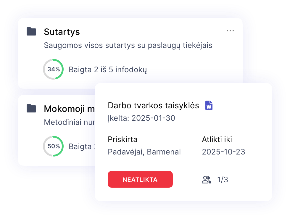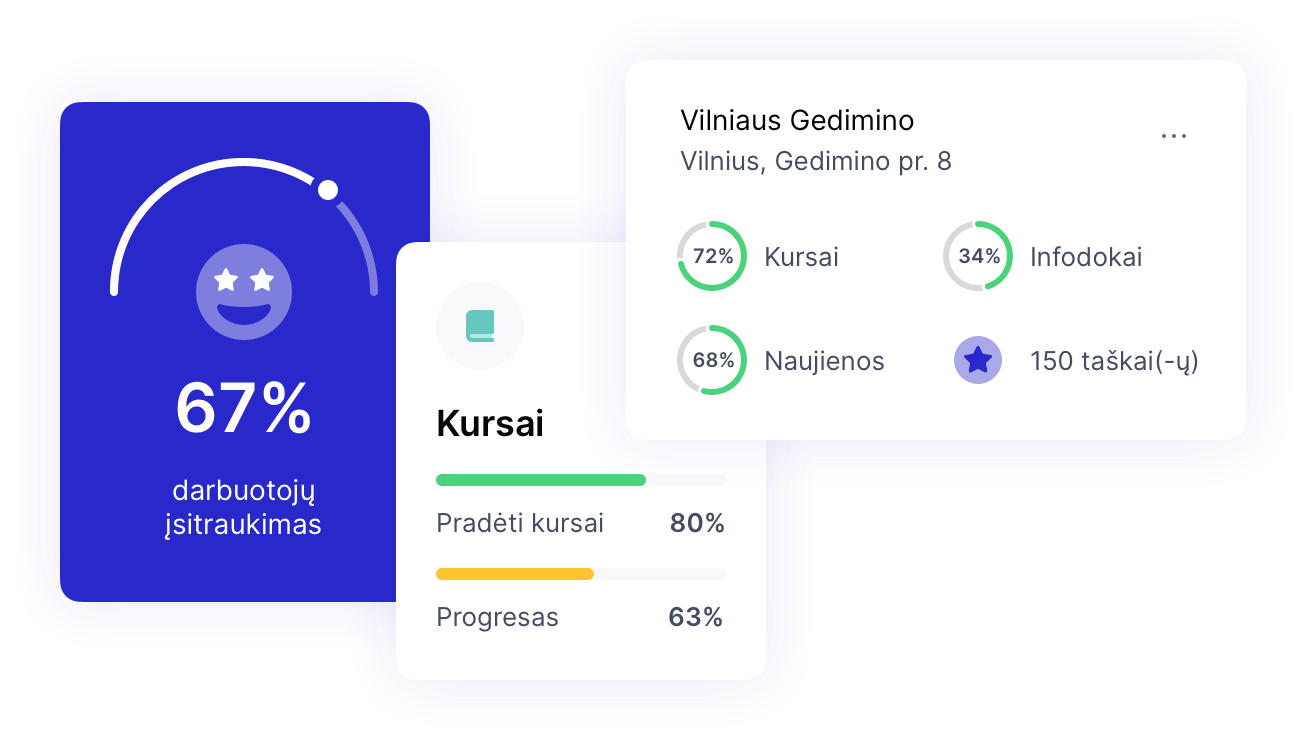 Stebėkite mokymų progresą, dokumentų pasirašymą ir naujienų peržiūras.