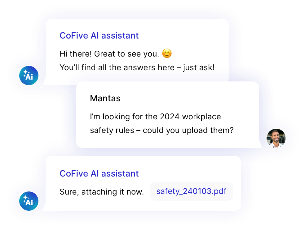 The platform is very easy to use – everything is clear from the very first minute, making the learning process smooth and enjoyable. The CoFive AI knowledge assistant saves a significant amount of time, as employees get answers instantly. The support team is fast, professional, and at the same time very approachable and helpful.